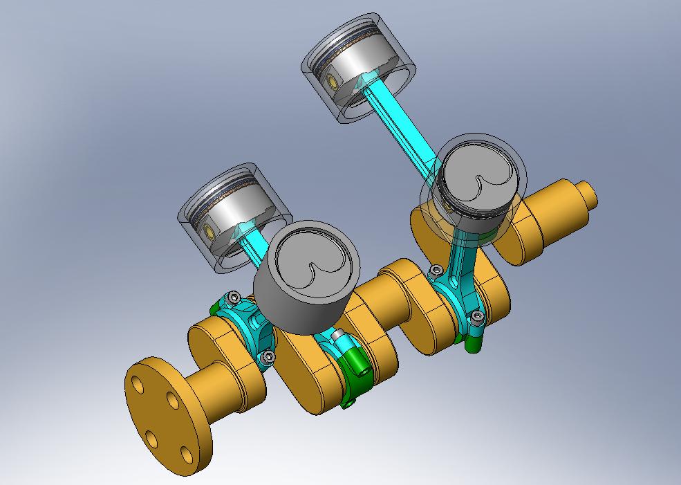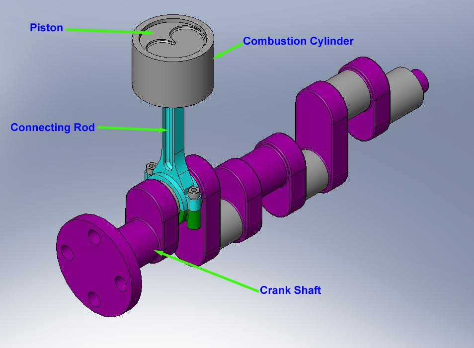 Figure 3: A crank shaft turning a connecting rod which moves a piston within a cylinder.
