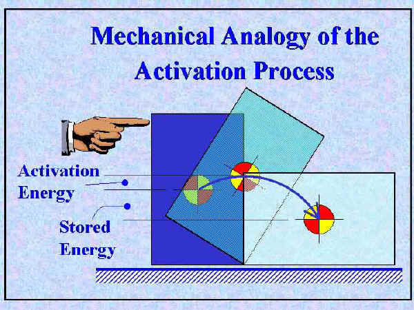 Annealing is a process by which heat causes metals to soften, become more pliable and increase electrical conductivity. The figure above is a mechanical analogy of how heat energy pushes arrangements of metal atoms over an activation level, which leads lower stored energy.