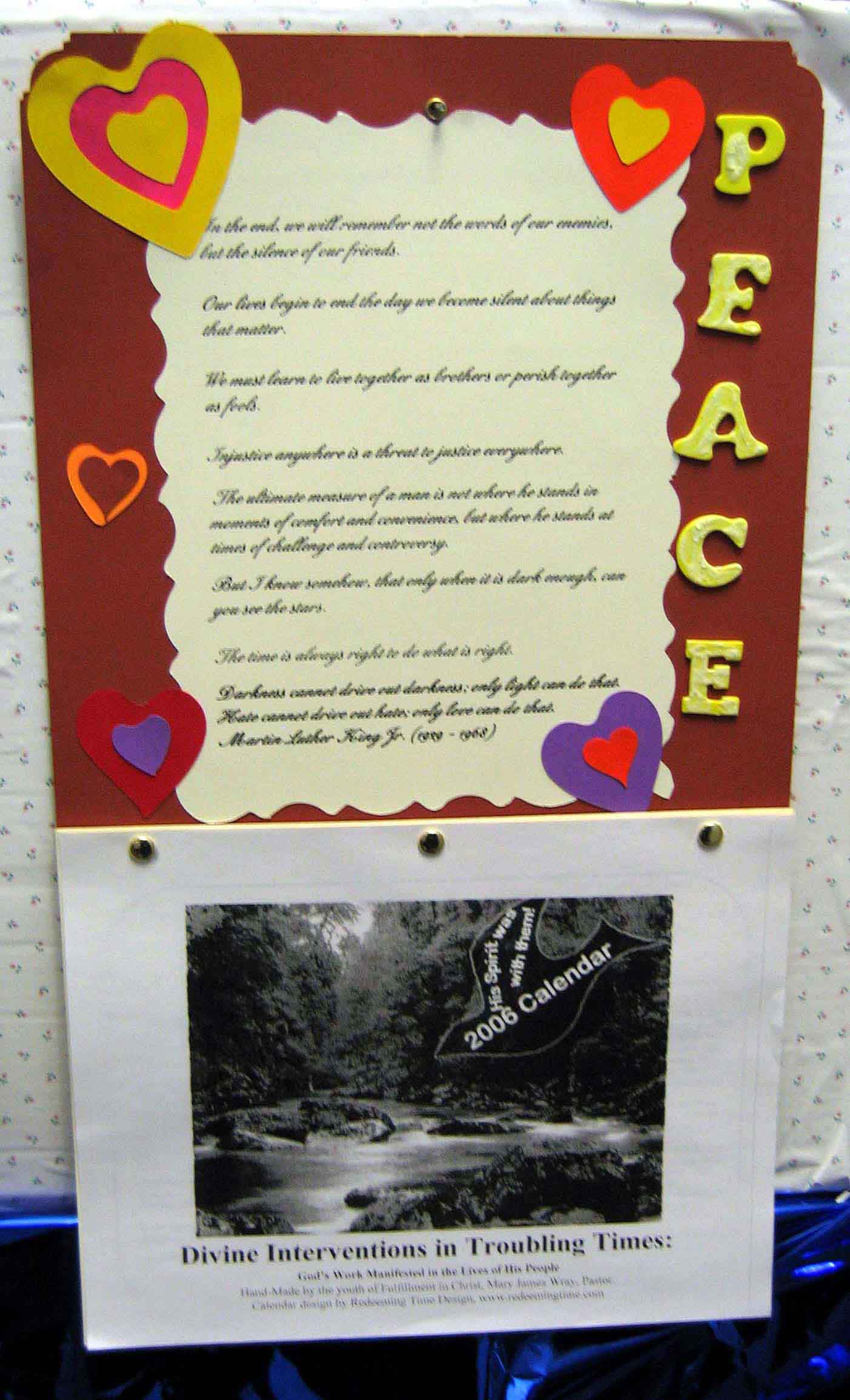 The calendar pages are available in white or multicolored. On each month a brief biography is squeezed in among the dates. These bios are inspirational and highlight how God's hand was seen in many lives.