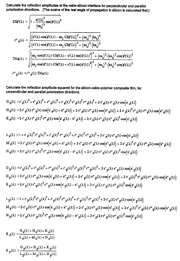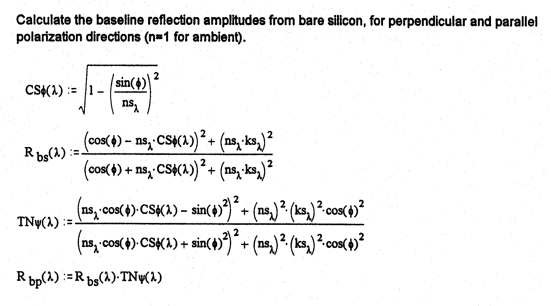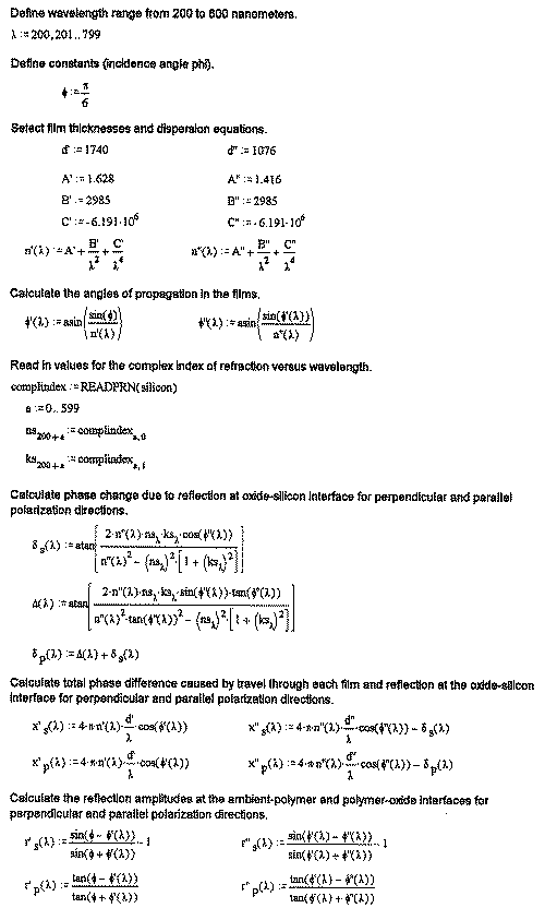 MathCad program to simulate the condition in the double-film wafer using, values from the NanoSpec:
