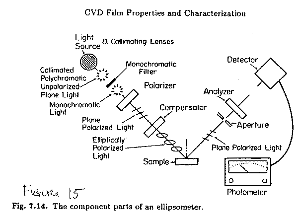 Schematics of key ellipsometer elements is shown in Figure 15. A monochromatic light source is linearly polarized by a plane