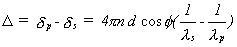 ψ and Δ are functions of the following variables: the angle of incidence (φ), the wavelength of incident