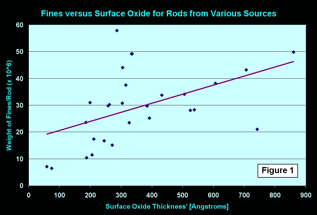 This instrument has been used for over a decade but it was just introduced to the Wire Industry in a 2008 paper by Pops and Baker, which won a �Best Paper Award� [1]. The FPA can collect fines generated by two phenomena: Rod Potential Fines: The rod making process introduces damage to the rod surface, which will readily generate fines during drawing. Thus, monitoring the Fines Potential of rods will predict the volume of fines those rods will readily produce, even under optimal drawing practices. Figure 1 shows a very dramatic illustration of this technique, where Rod Potential Fines were shown to highly correlate with surface oxide test results [1 & 2], which makes sense once the concepts involved are understood. Figure 1 is more dramatic considering it encompasses data taken from a variety of a rod sources with different surface processing, including: acid pickled, alcohol cleaned and shaved.