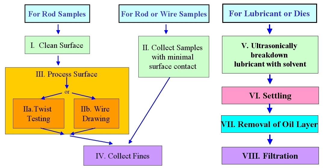 The Fines Potential Test is mainly used to predict the relative quantity of fines that will be generated when various rod sources are drawn. It can also be used to analyze wire drawing operations for their degree of fines generated.